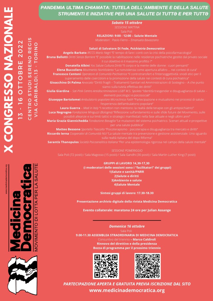 E’ da poco stato pubblicato il numero 253-254 della rivista di Medicina Democratica con il dossier sulla salute mentale che racchiude gli interventi per il congresso nazionale di Medicina Democratica di Ottobre 2022.