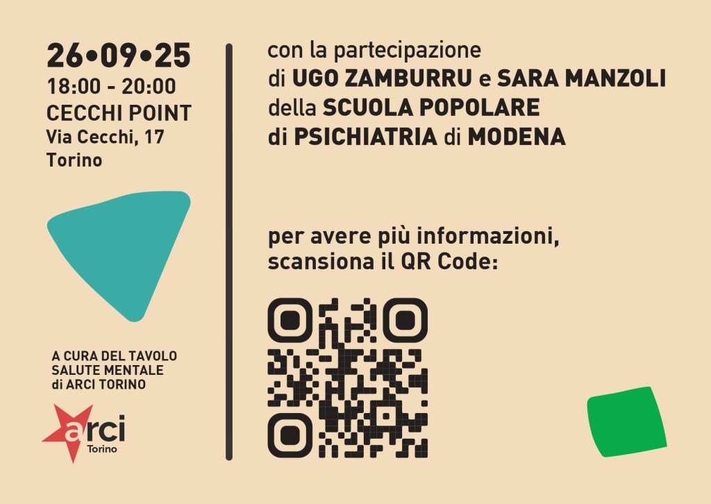 Durante l’incontro ci confronteremo con Sara Manzoli e Ugo Zamburru che hanno dato vita alla Scuola Popolare di Psichiatria di Modena, un’esperienza preziosa da cui trarre spunti e ispirazione e con cui confrontarsi.