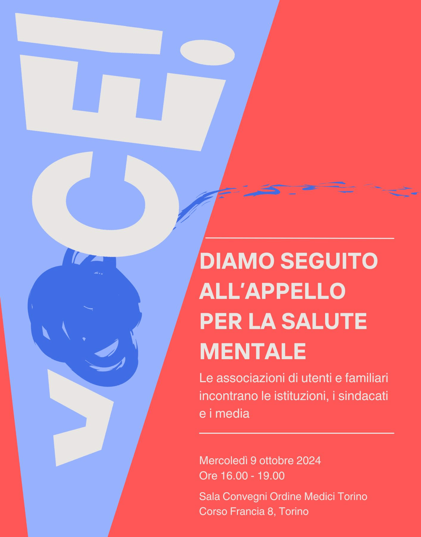 Il 29 maggio, oltre quaranta Associazioni piemontesi di utenti e familiari ed Enti che si occupano di salute mentale, hanno presentato un Appello a 13 Candidati alle elezioni Regionali, esponendo i dati che illustrano la difficile situazione in cui si trovano i servizi di salute mentale e sollecitando un preciso impegno per superare lo stato di inadeguatezza dell’assistenza, in particolare per adolescenti e giovani … [Continua a leggere Diamo seguito all’appello per la salute mentale]