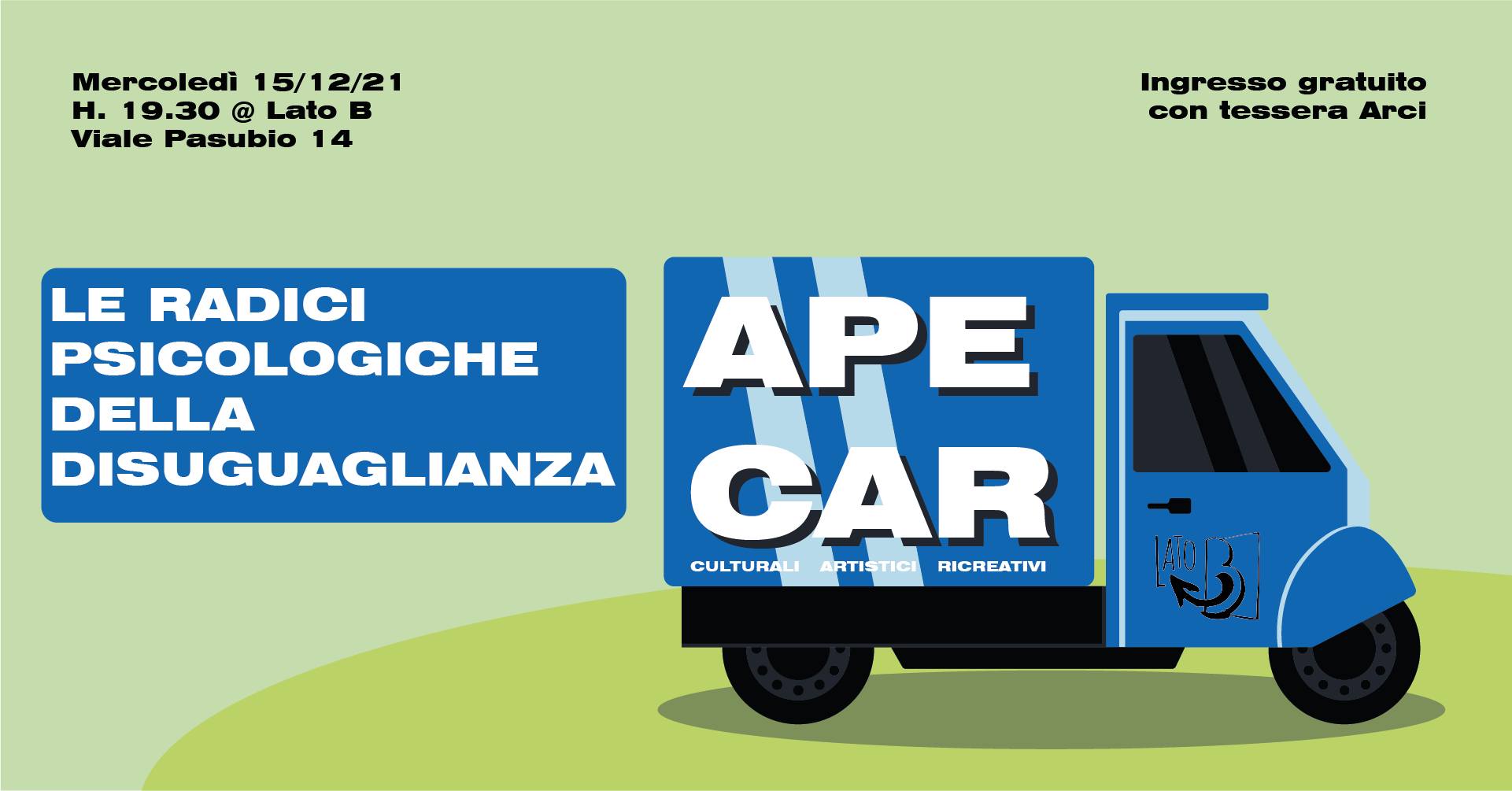 Lo Sportello TiAscolto, insieme al Circolo Arci Lato B – L’altro lato di Milano, è orgogliosa di presentare l’evento dal titolo “Le radici psicologiche della disuguaglianza”, che si terrà il giorno mercoledì 15 dicembre presso la sede del circolo in Viale Pasubio 14 alle ore 19.30. Come si alimentano le disuguaglianze? Quali processi psicologici impediscono a chi è in condizione svantaggiata di ribellarsi? E … [Continua a leggere APECAR // Le radici psicologiche della disuguaglianza]