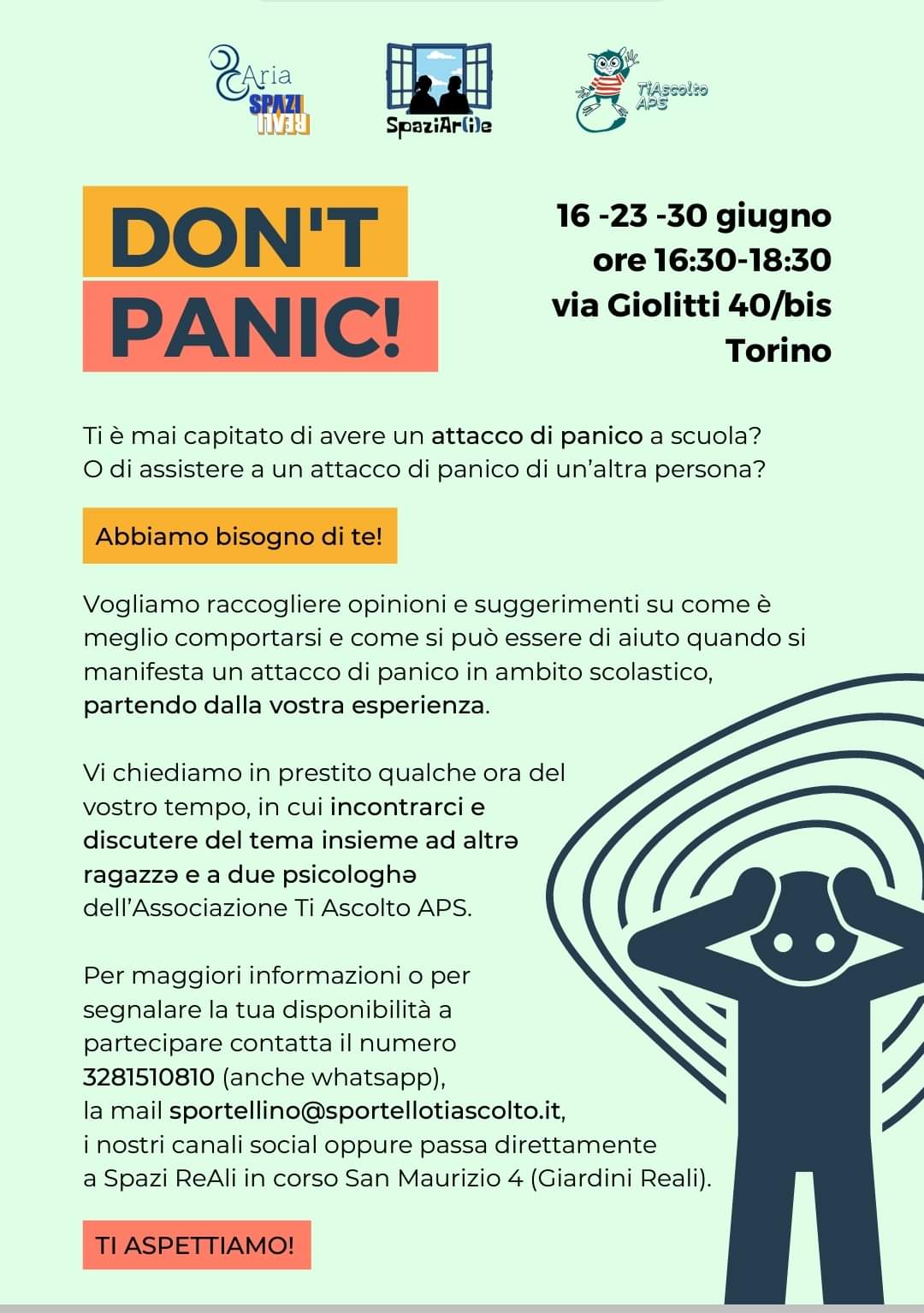 Hai mai avuto un attacco di panico a scuola o hai visto qualcuno averne uno? Dalle esperienze che stiamo raccogliendo, questa è una delle cose che accade più frequentemente agli adolescenti da due anni a questa parte. All’interno del progetto SpazieAr(i)e, che vede coinvolto anche Sportellino, verranno dedicati 3 incontri a questo tema così importante e attuale! Contattaci per dare il tuo contributo… E … [Continua a leggere Don’t Panic!]